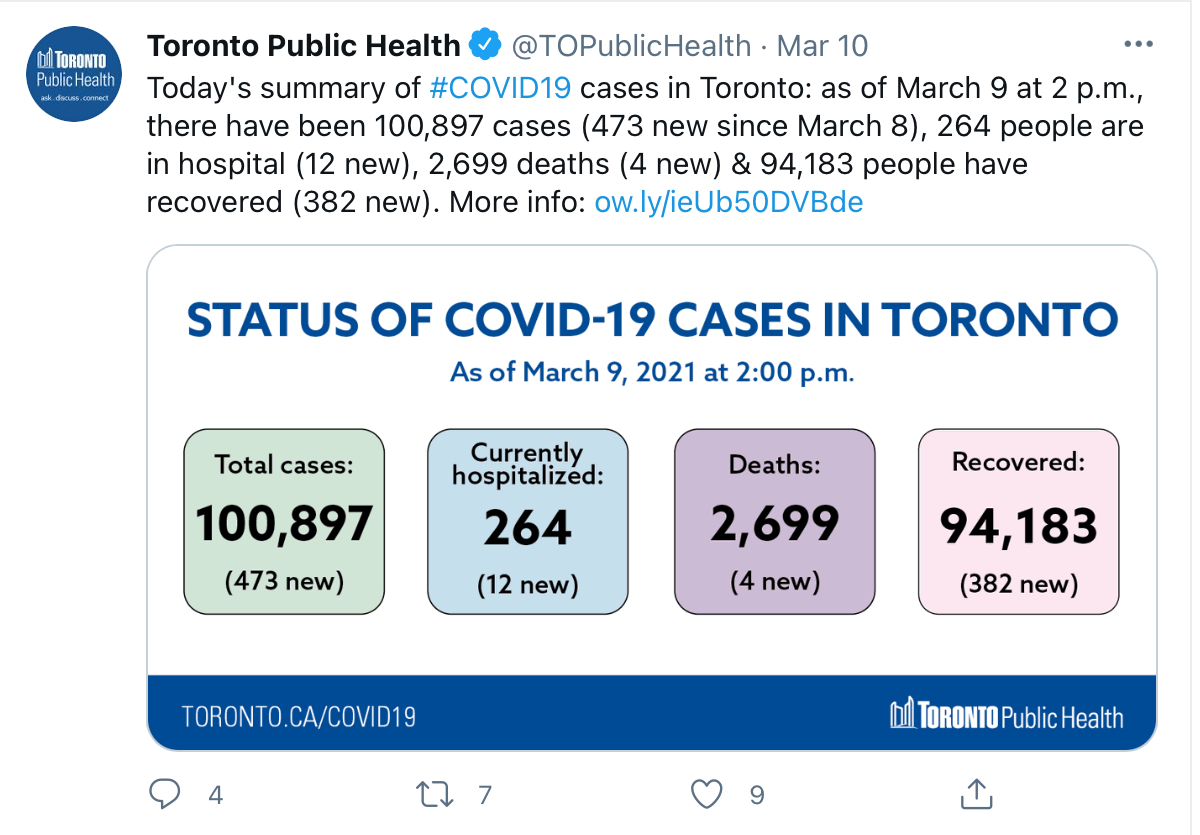 Dr Jennifer Kwan On Twitter Variants Of Concern Voc In Ontario B117 Variant Uk 275 39 B1351 Variant S Africa 3 0 P1 Variant Brazil 0 0 Source Https T Co Uqkheuvrwm Https T Co 9pranpmhlx from pbs.twimg.com This includes 727 new cases in toronto, 365 in peel for more on today's top stories and the spread of the novel coronavirus across the country, please refer to our live updates below throughout the day. Today, there are 954 new cases in toronto, 434 in peel, 348 in york region, 205 in ottawa and 146 in hamilton. The most recent deaths include two people over 80 years old. The province published both reports today due to the good friday holiday. That ends three consecutive days of declining numbers of new cases. Today it is 38. ontario completed 35,436 coronavirus tests tuesday, and as of wednesday 48,079 cases were under. Are we missing your favourite ontario related subreddit? Twitter share this item on twitter.
